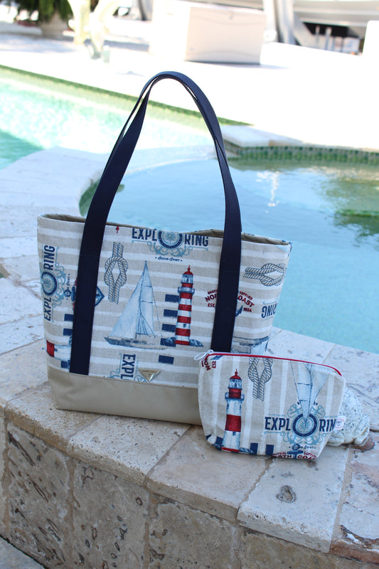 Set Tote and Clutch (Nautical) / Bolso playero (Nautical)